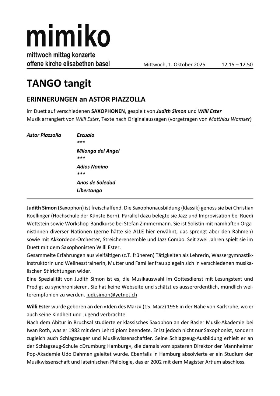 Musik von Astor Piazzolla, arrangiert von Willi Ester